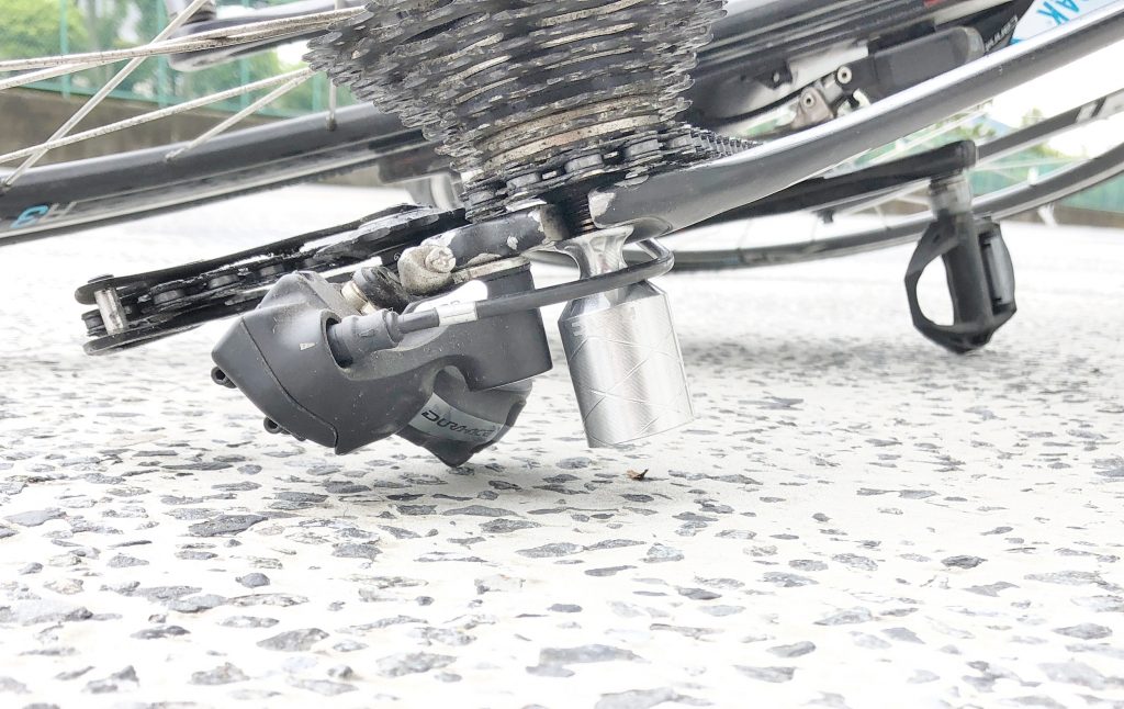 倒した時にディレーラーが直接ヒットしないようにするパーツがあれば破損を最小限にできるはずです。