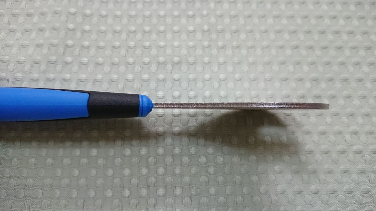 レンチの厚さをノギスで測ったところ、およそ2.5mmあります。