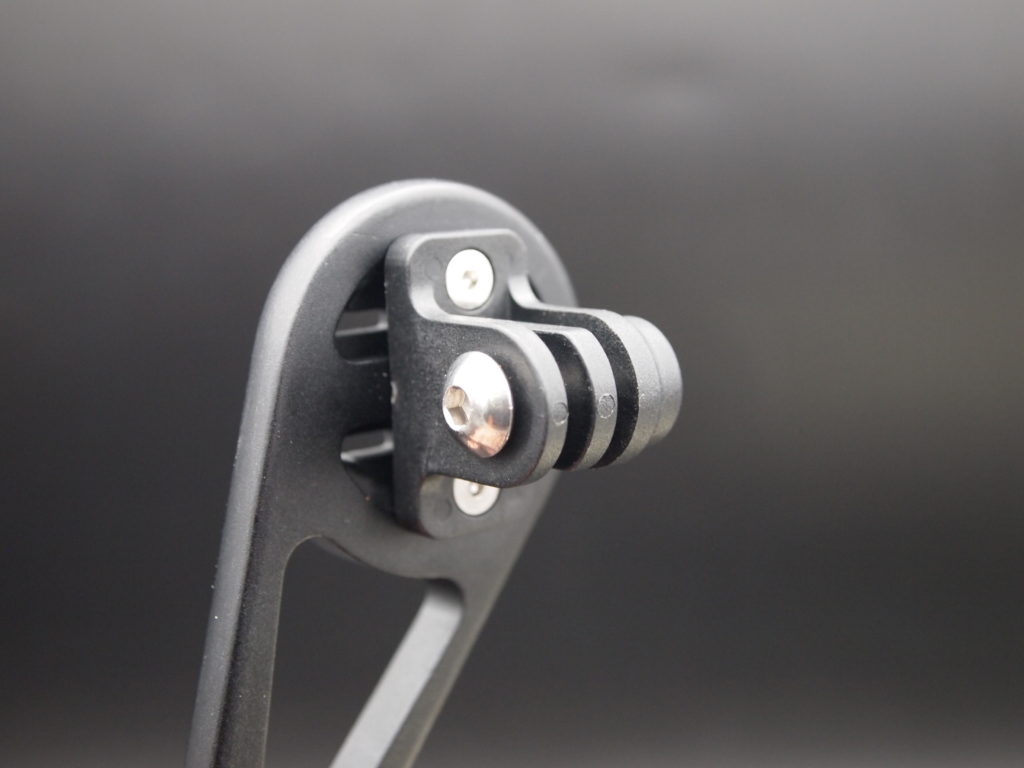 アクションカメラもしっかり装着できました(写真はアクションカメラ付属のネジを使用しています)