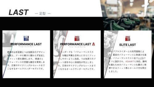 ・幅広甲高に対応するAsianFit形状「エリートラスト」採用