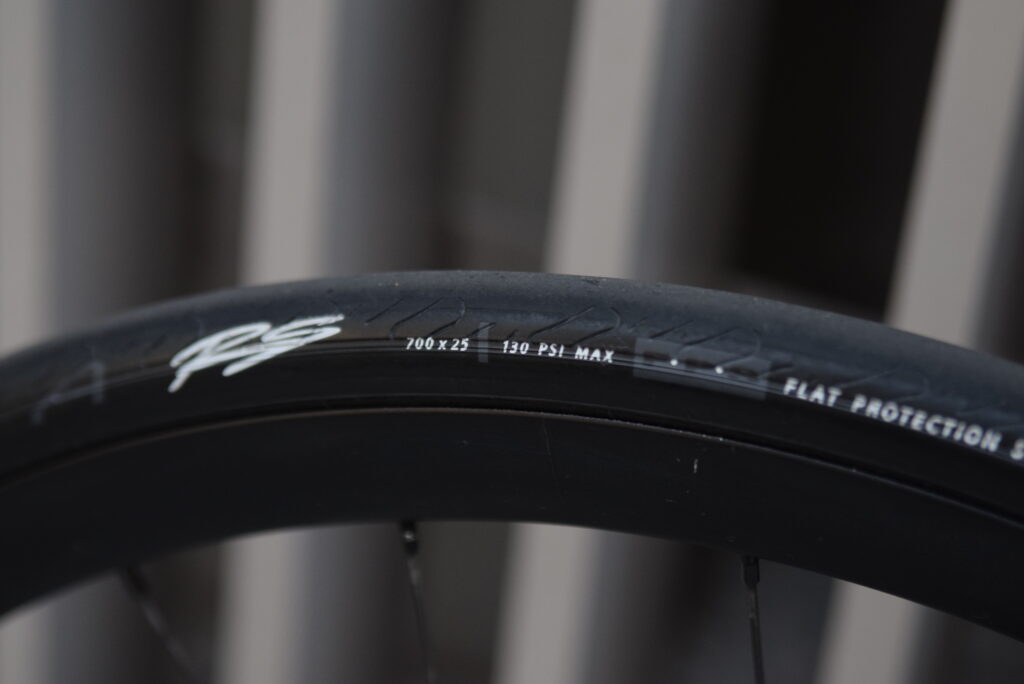 実測重量は2本の平均253g(25c)とまずまず。特筆すべきは接地面のタイヤ厚みが4〜5mmもあること。使用できる距離はかなり長そうです。2020年改定の新ETRTO規格で基準となっている内幅19mmのリムに25cを装着したところ、タイヤ幅は実測25.2mmとほぼ規格通りでした。ラインナップは23cと25cです。
