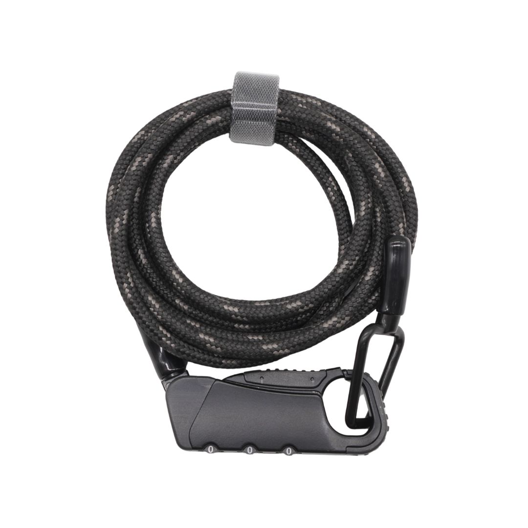 ・外側に防弾チョッキや登山ロープに使用される非常に強靭で摩耗に強いUHMWPE(超高分子量ポリエチレン)繊維を二層構造で採用し内側の2.0mmスチールブレードコアと組み合わせることで優れた耐切断性能を発揮(同サイズのコイルケーブル比・長時間駐輪時はチェーンロック推奨)