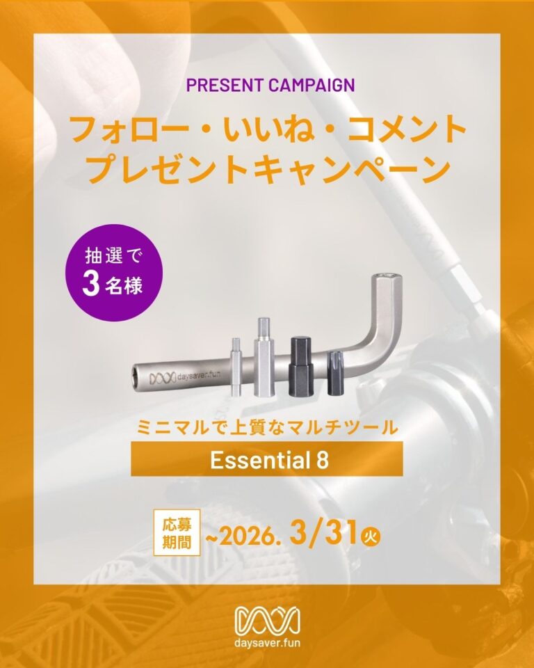 Daysaverの国内輸入総代理店であるライトウェイプロダクツジャパン株式会社は、妥協のない機能性を備えた、最小・最軽量の自転車用マルチツール「Essential 8」を抽選で3名様にプレゼントするキャンペーンを2026年3月4日に開始いたします。