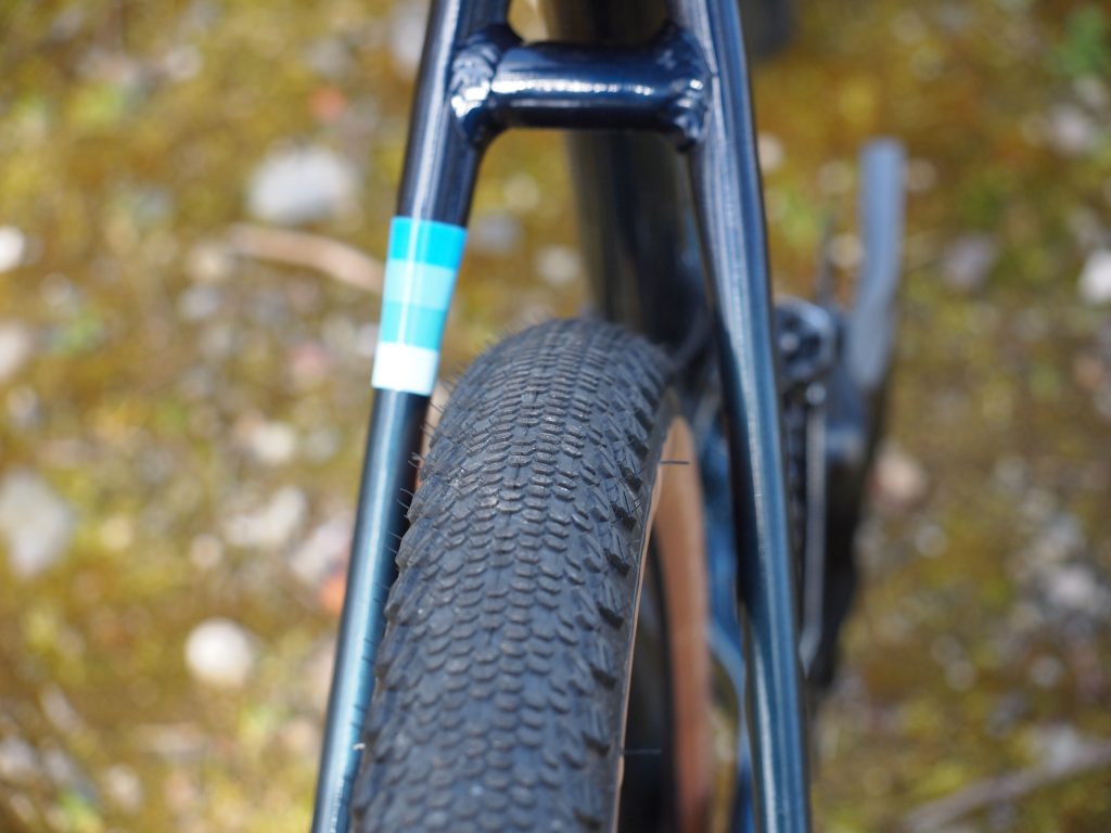 取り付けたのはVittoria Terreno Dry、Folding Tan、チューブレスレディ、650b x 47c フレーム設計上は53ミリ(2.1インチ)まで装着可能です。