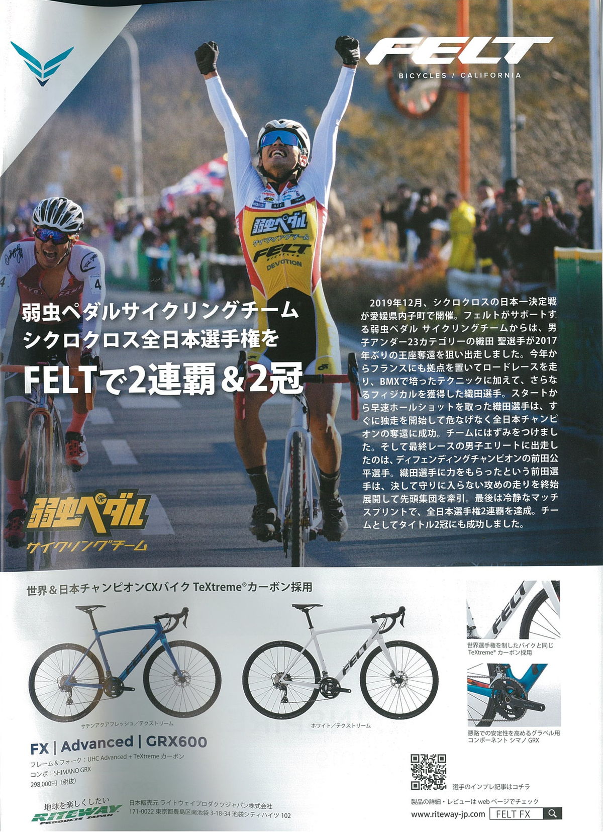 【BiCYCLE CLUB 3月号】(1月20日発売号)で弊社取扱商品が掲載されました。 BIKE & TRAILER 2020.01.24 P.4 FELT FX Advanced GRX600 298,000円(税抜) P.106,P.107 FELT BROAM 60 118,000円(税抜)