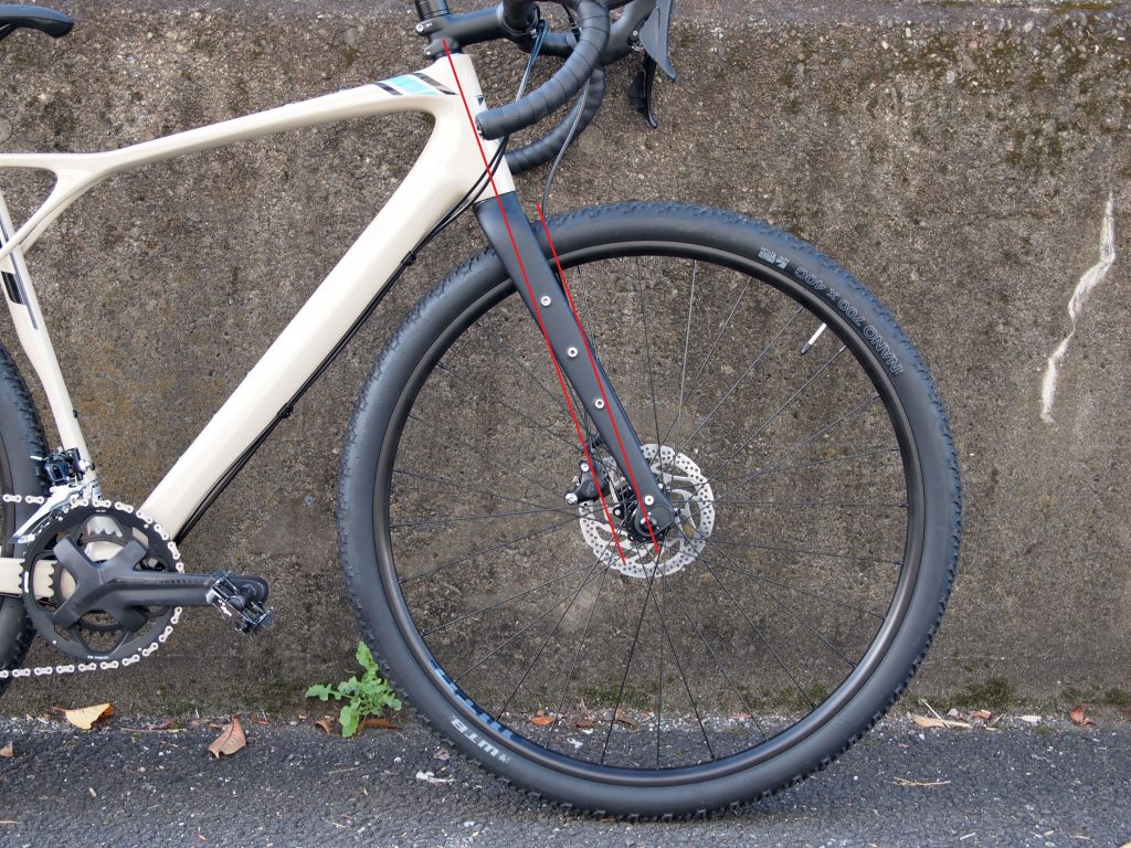 いわゆるグラベルバイクのジオメトリをいくつか見ましたがフォークオフセット70mmという数値の物は見つかりませんでした。