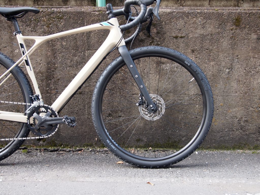 オフセット55ミリセッティングだと、ほぼロードバイク。グラベルバイクと思えない軽い走り。ハンドリングも癖が無くコーナーリングが軽い。