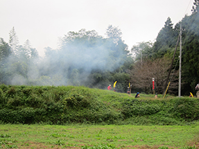 この祭りで放たれる大筒2門は鉢形城が貸しているそうです。 鉢形には大筒10門ありますよ… まるで核保有国のような不気味さが漂います。 |