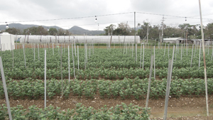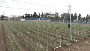 出荷前にはこんなになるのです。 さぁ、これは何でしょうか?正解は"菊"です。 これも沖縄の特産の一つで、内地に出荷するのだそうです。 全部を一度に植えるのではなく、順番に出荷できるように段階的に植えるのだそうで、同じ時期にいろいろな成長段階の畑を見られるわけです。 |