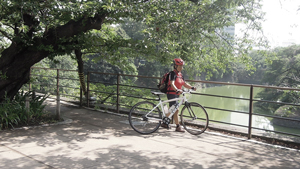 神田川沿いには風情のある建物も多く、ゆるゆると走るには最適です。 古池やで有名な芭蕉庵です。 |