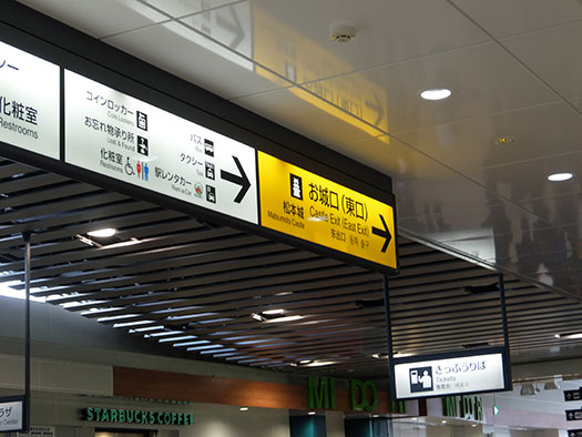 | 「お城口」・・・これはなかなか見ませんね。町を挙げての松本城、を感じます。 それにしても今回は新宿を8時ちょうどのあずさで来ましたが、今は2号ではなく5号なんですね。 |