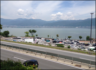 諏訪湖に面しており、非常にきれいなSAです。 |