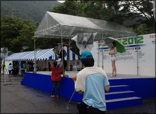 パシャッと、記念撮影もしてくれます。ヒルクライム前日に癒しの欲しい方、お勧めです。トロフィーとか持っていくと、表彰の記念写真とか偽造できるかもしれません(笑)…いや、しませんよ? |