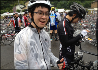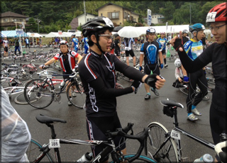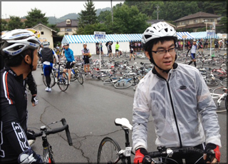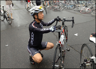 おそらくRPJ勢で今日一番のスペックのバイクを駆るいそべー。準備運動も忘れず、気力も十分です。 |