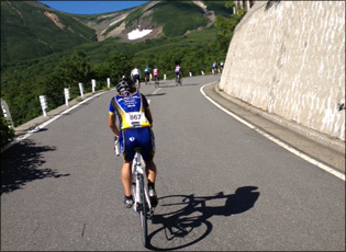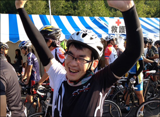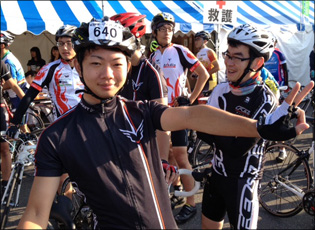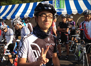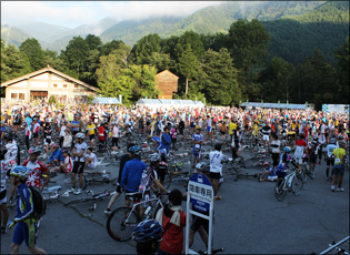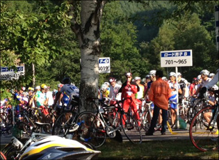 vol.07 僕らのシリーズ最終戦! 駆けろ!乗鞍ヒルクライム! 社員コラム 2012.09.05 おはようございます、こんにちは、こんばんは。乗鞍への道2012実行委員会です。とうとうこの時がやってきました…、そうです、最終戦!RPJ社員は果たしてNORICLIMBERになれるのか!?… 最終戦に赴くため、RPJ事務所へこの日のために血反吐を吐くほどの修練を積んだ屈強なライダーたちが集まってきます… 出発前の記念撮影もこれが最後。何やら感慨深いものがあります。 今回も移動は高速道路の長旅です。急いではいても、適度にSAで止まりましょう。こんなパネルがあったら、ほっとけないじゃないか! 大事なことだからもう一度言うぞ!ほっとけないじゃないか! 長野県といったら信州そばなんです。でも、毎回蕎麦をすすっている気がするぞ! 蕎麦があったら天ぷらだって食べたくなるんです、だって人間だもの。 後発組が夏休み最後の週末の渋滞に完全にはまっている中、先発組はブースを出しておりました。 インタビューを受けるユウさん、ちょっと目が泳いでる…(笑) 出展内容は今回盛りだくさんでございました。 まず、注目のCYCLEOPSのトレーナー。非常に静かな駆動音、自然な走行感、高剛性フレームがウリです。乗ったらきっと幸せになれますよ…。 軽量パーツが欲しいならKCNCなどいかがでしょう。アルミ削りだしのパーツは驚くほど軽く、乗鞍コースレコードホルダー、森本選手も愛用しています! とか営業トークしてたら森本選手来たーーー! なんとこの翌日、森本選手はチャンピオンクラスで優勝してしまいます。 王者返り咲き、異次元の速さを見せつけてくれちゃいます。 まだまだおススメあります、こちらDMTのプリズマ・ジルベールモデル!ベルギーチャンピオン、フィリップ・ジルベール専用カラーのプリズマです。たとえると、ガ○ダムのシャ○専用カラーみたいなもんです。 こちらJUCOLAのクエン酸パワー。乳酸をエネルギーに変えちゃえ!という全く新しいタイプのスポーツドリンクです。乳酸は、使える! こちら先日城散歩でも使っていた2012モデル FELTのZ2。とても軽く、またライダーの疲れも軽減してくれるフレームデザイン。アップライトなポジションもヒルクライム向きといえるでしょう。 Z2なんて高くて買えないよ!というあなたに、Z4。ワイヤー引きアルテグラだって変速性能は十分です。 今回は趣向を変えて女性モデルのご紹介も!こちらFELT ZW5です。女性専用設計されたこのフレームは貴女に理想的なライディングフォームを約束します…。デザインも、ダウンチューブにFELTのFマークが散りばめられていてとってもかわいいんですよ! レースといったらレースクイーンです。誰が何と言おうが、これだけは譲れない!見よ、この行列! 美しい… 美しい!日本の女性は美しい! やっぱり自転車イベントはお祭りです。小旅行のような楽しさもあります。 明日の決戦はあの頂上… 本日のお宿へとうちゃーく! おなかが空いたので、さっそく晩御飯頂きましょう。内装がすごくお洒落! 料理もおいしそう! そりゃあ、箸も進みますとも!ひたすら貪り続けます。 全員、食べることに満足し、その夜… メンバーは自分たちの自転車を調整のため積み下ろしておりました。 阿部ちゃん 「ユウさん、そのバッグの中身、そんなにいるんスか?」 ユウさん 「でもこんだけないと、いざってとき心配やん?」 たかやん 「パンクしたらそこで試合終了ですよ、先輩。」 TKO 「あー。これだめっすね、隊長」 ズミ 「えっ、だめ?」 TKO 「もう病院送りコースですよ、どうしてこんなになってるんすか?」 ズミ 「・・・・」 ゆみたはホイールを付け替えるみたいです。とりあえず空気入れから。 いそべーはスプロケット変更です。ベテランはギア選択が当日の成否を分けることを知っています。 前隊長はどうやらチェーンが長かったようです。 自転車イベントの朝は早いです。朝5:30には宿が朝食を用意してくれます。 豪華! 会場に着くとこの人だかりです!何人いるんだー! それよりもヤバい、みんなとはぐれた…。 ウォーリーを探せ状態の中、第一RPJメンバー発見!しかしこれだけの人がいても、GTのカーボンロードに乗っているのはおそらくマット氏のみかと思います…。激レアです。 さらに続けて第二RPJメンバー発見!我らがボス、トムさんです。今年は135もあり、一番自転車に乗っているはず…。記録更新を狙います。 だいぶ余裕そうなたかやん。実は彼、暫定では今期乗鞍メンバー最軽量の体重の持ち主です。 決戦の緊張からか、若干ひきつった笑顔を見せるTKO。彼は戦うメカニックマンになれるのか!? 鳥海山の好タイムに味をしめ、GTテクエスタではなくFELTのZ45を持ってきたゆみた。確実に好タイムを狙ってきています。むしろ去年はなぜそうしなかったのか…。 一番最後のスタート順となるのぶさん。それならもっと寝ていたかったとぼやきます。 残念ながら発見できたRPJメンバーはここまで。ほかにも悪魔おじさんを見つけたりもし