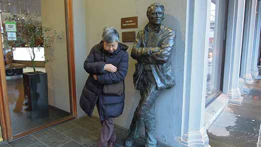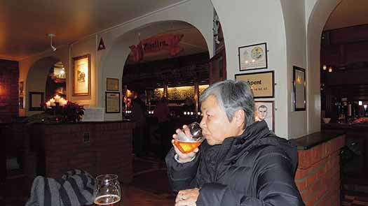 | エーエー、たまには店でも飲みました。でもこのコップに入ったビール、何と78クローネ、1,600円近くするのです。傾くほどなんて飲めませんでした。 |