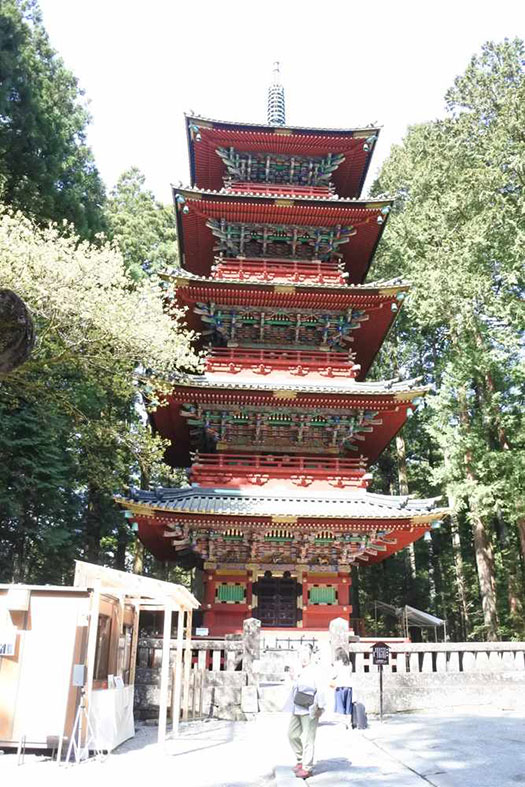 | 石鳥居をくぐってすぐ左手にある五重の塔です。これは若狭の小浜藩主酒井忠勝が献納したものだそうです。400年で心柱が公開されていましたが、写真はダメでした。 |