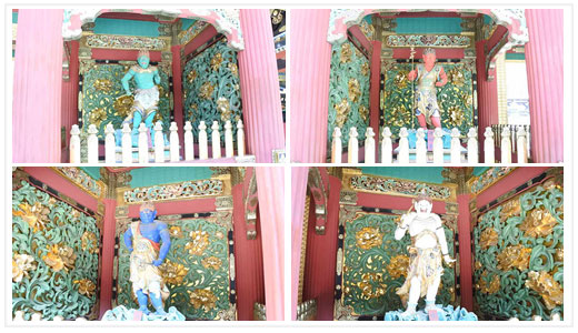 | ここは輪王寺の別院で大猷院というのは三代将軍家光の法号で、「大きな仕事を成し遂げた」という意味を持つそうです。この写真は仁王門です。真中にいるのが生きた仁王です。 |