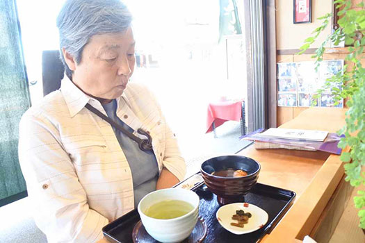 | ありました。日光の町に自転車です。この店に入ったらお客は私たちだけ。尋ねたら、お店の若夫婦なのだそうです。 |