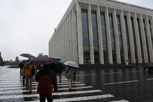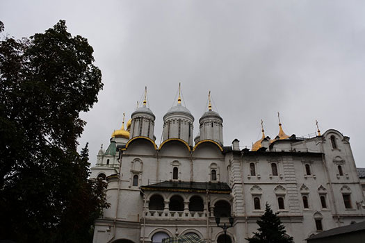 | 入ってすぐ右側にあるクレムリン大会宮殿です。かつてはソ連共産党大会や中央委員会総会に使われたそうですが、今は国際会議やオペラ、バレエの劇場としても用いられているとのこと。 |