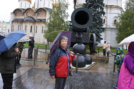 | ロシアは大砲でも、鐘でも、広場でも、何しろ大きいものが好き、そして教会の塔はキンキラキンが大好きなようです。武器庫の中の宝物や教会の壁の装飾など、豪華なものがものすごい量で、とても東洋の島国の人間には理解できないというか、ついていかれないというか、大きな違いを感じました。ロシアの首都モスクワ、その中心でもあるクレムリンや赤の広場ですから、その派手さもひときわでした。キジー島のような人里離れたところもロシアだし、グム百貨店のにぎわいもロシアなのですネ。次回はその中間のような場所、セルギエフ・ポサードです。お付き合いください。 |