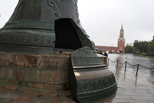 | 鐘を鋳造中に火災が発生、水をかけてしまいヒビが入ってしまったのだそうです。結局一度も音を出したことがないそうです。かけらだけでも11トンもあるそうです。 |