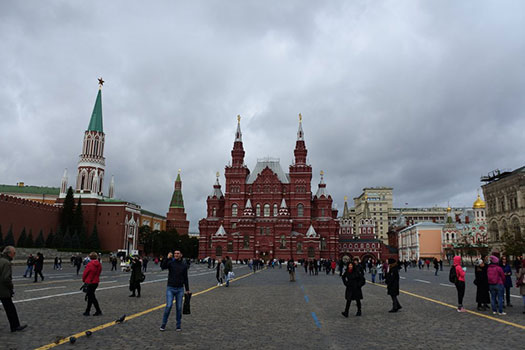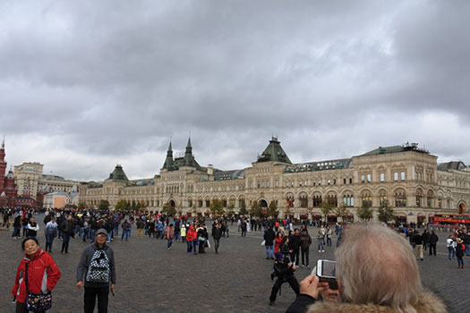 | グム百貨店とレーニン廟が向かい合い、国立歴史博物館とポクロフスキー聖堂が向かい合って、出来ている広場が赤の広場です。巨大です。 |