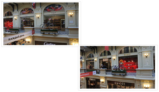 | Cartierの上にもGUCCIの上にもあるのは自転車でした。グム百貨店はエライ!! |