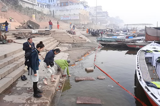 | ヒンドゥ教は全く解りませんが、私も沐浴はしませんでしたが、ガンジス河に手を入れて見ました。あまり冷たくありませんでした。 |