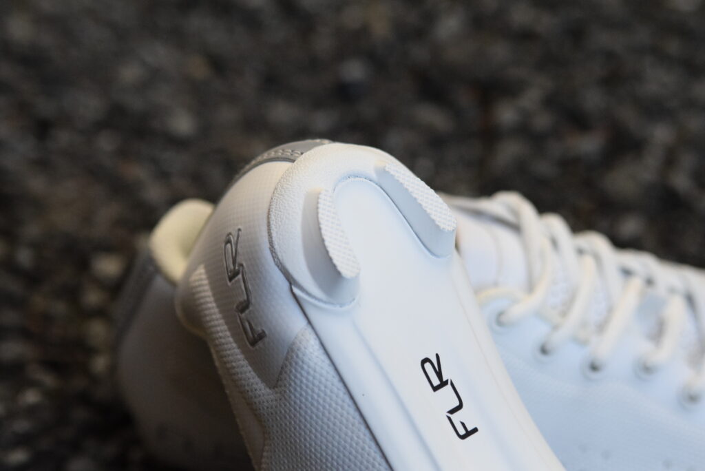 アッパーの爪先とかかと部分には補強が入っています。以前ラインナップしていたF-XX KNIT、F-11 KNITはここが経年で黄ばみやすかったのですが、FNT-9は黄ばまない素材に変更されています。