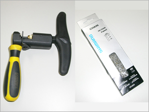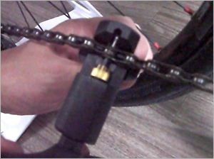 ピンが押し出されチェーンを切る(外す)ことが出来ます。 締めてカチッと音がしたら、今度は緩めます。 |