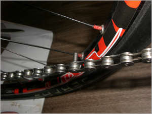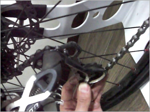 新しくチェーンを組みつける場合、前後一番大きいギアにチェーンにひっかけ調節します。 チェーンの長さは今まで使っていたものと同じに合わせるのが一番簡単です。 |