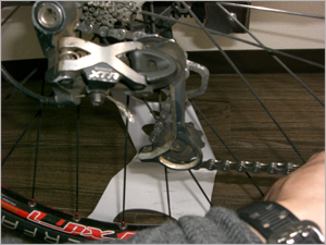 リアを一番小さいギア側(外側)にすると作業がしやすくなります。 | |