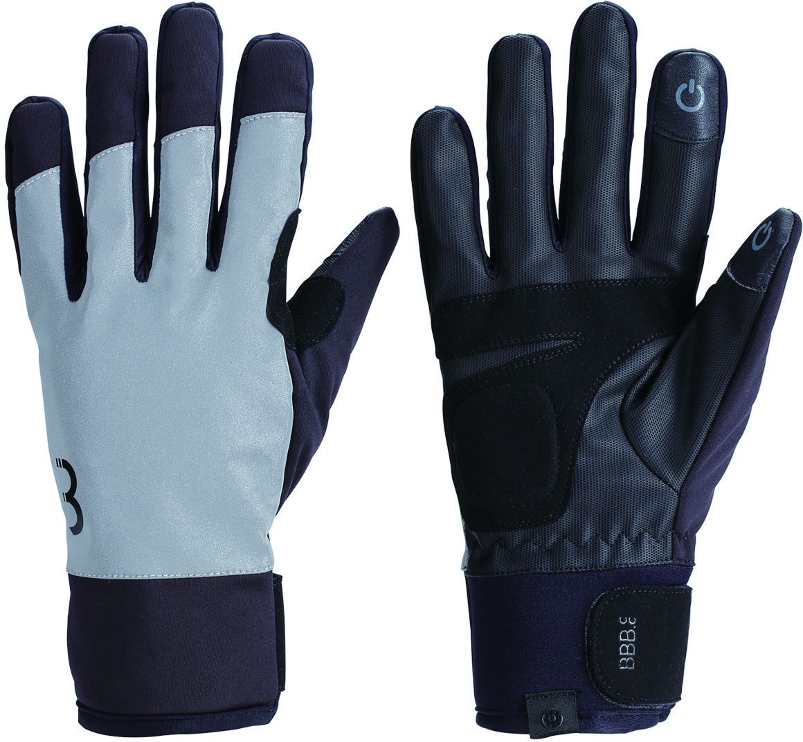 風を通さず、撥水性のある冬用の手袋で、側面に反射パネル、指の関節に控えめな反射ステッチが施され、追加の視認性を提供します。大きな柔らかいベルクロのカフスがあり、この手袋をジャケットの袖の上に着用できるようになっています。