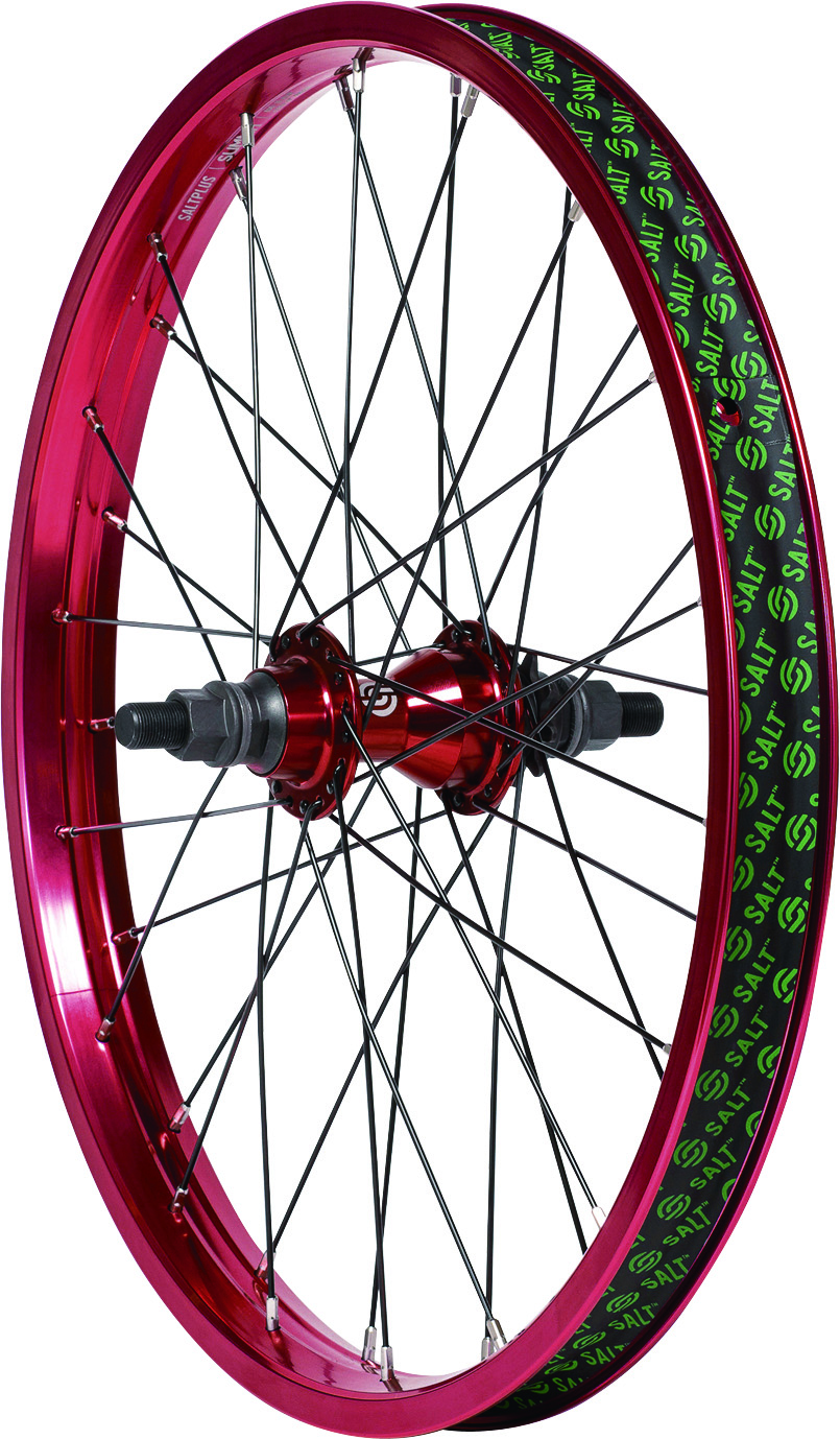 リム:SALTPLUS “SUMMIT” リム ダブルウォール アロイ ストレートサイドウォール 20″ in 36H/ハブ:SALT “EVEREST” リアハブ アロイ シールドベアリング 14mmアクスル対応 9Tカセット、RSD(右サイドドライブ)/スポークカラー:ブラック/リム幅:36mm/リム幅:36mm/OLD:110mm