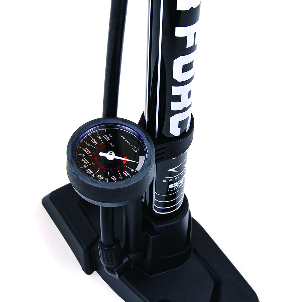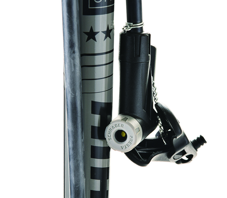 ●見やすい空気圧ゲージ付。全長が短いため小柄な人でもしっかりと最後までポンピング可能。