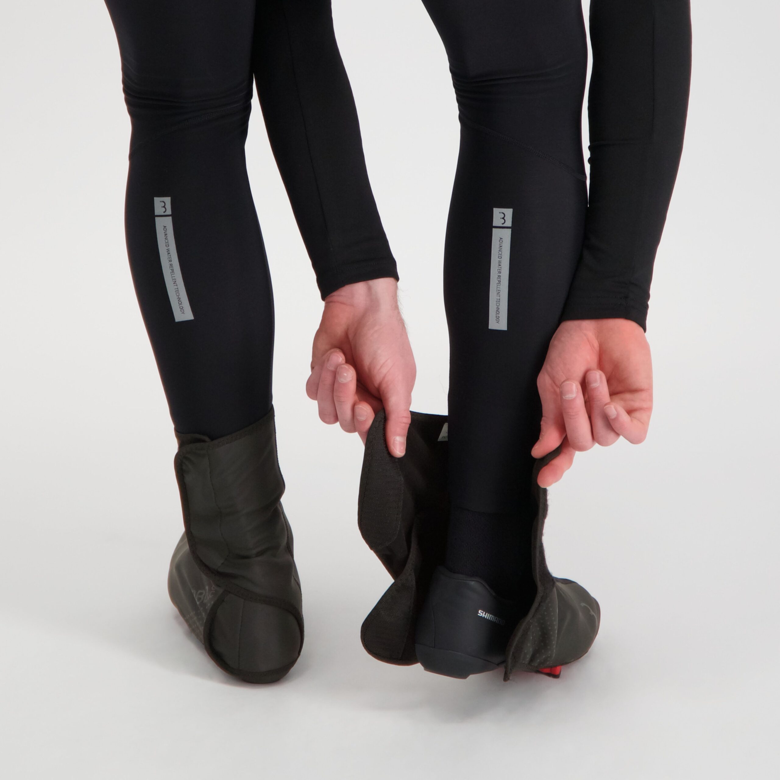 ●伸縮性のある素材は、幅広いタイプのサイクリングシューズに着用可能。