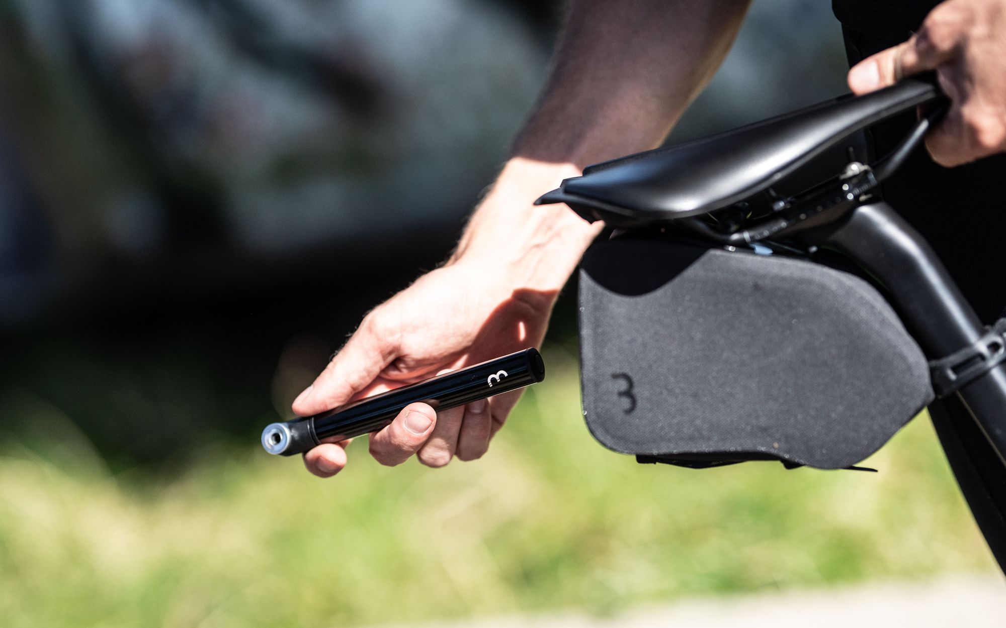 Singleshotの本体はわずか16㎝。サドルバッグなどに収納可能なほか、ジャージポケットにしまっても邪魔にならないサイズ感です。