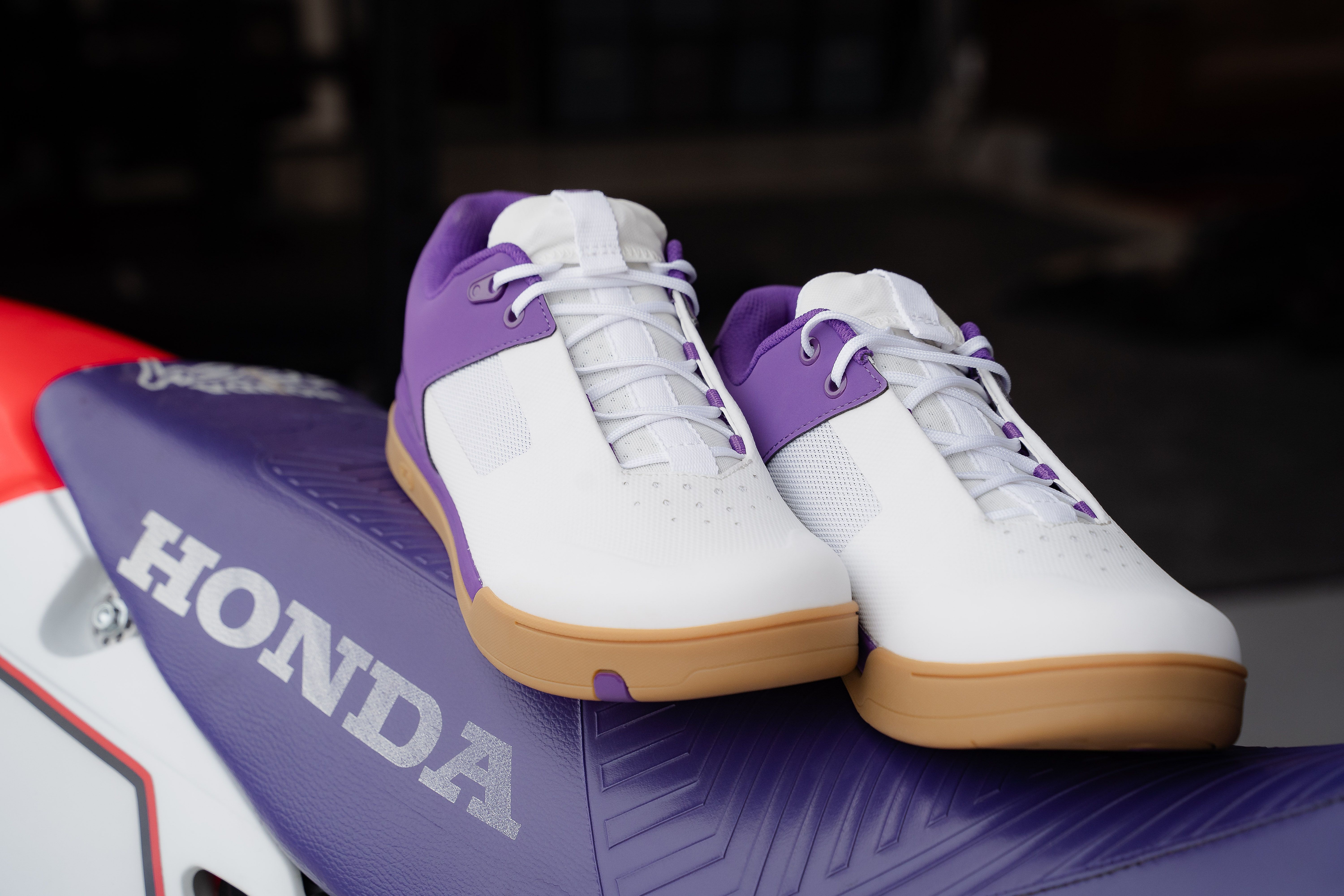 Bernard KerrのシグネチャーシューズBernard Kerrは、ワールドカップの表彰台からバイラルなInstagramクリップまで、その名を知られるライダーです。彼のシグネチャーシューズは、90年代のMeteorsスタイルと紫色への愛を反映しています。このシューズは、トレイルで注目を集めること間違いなしです。