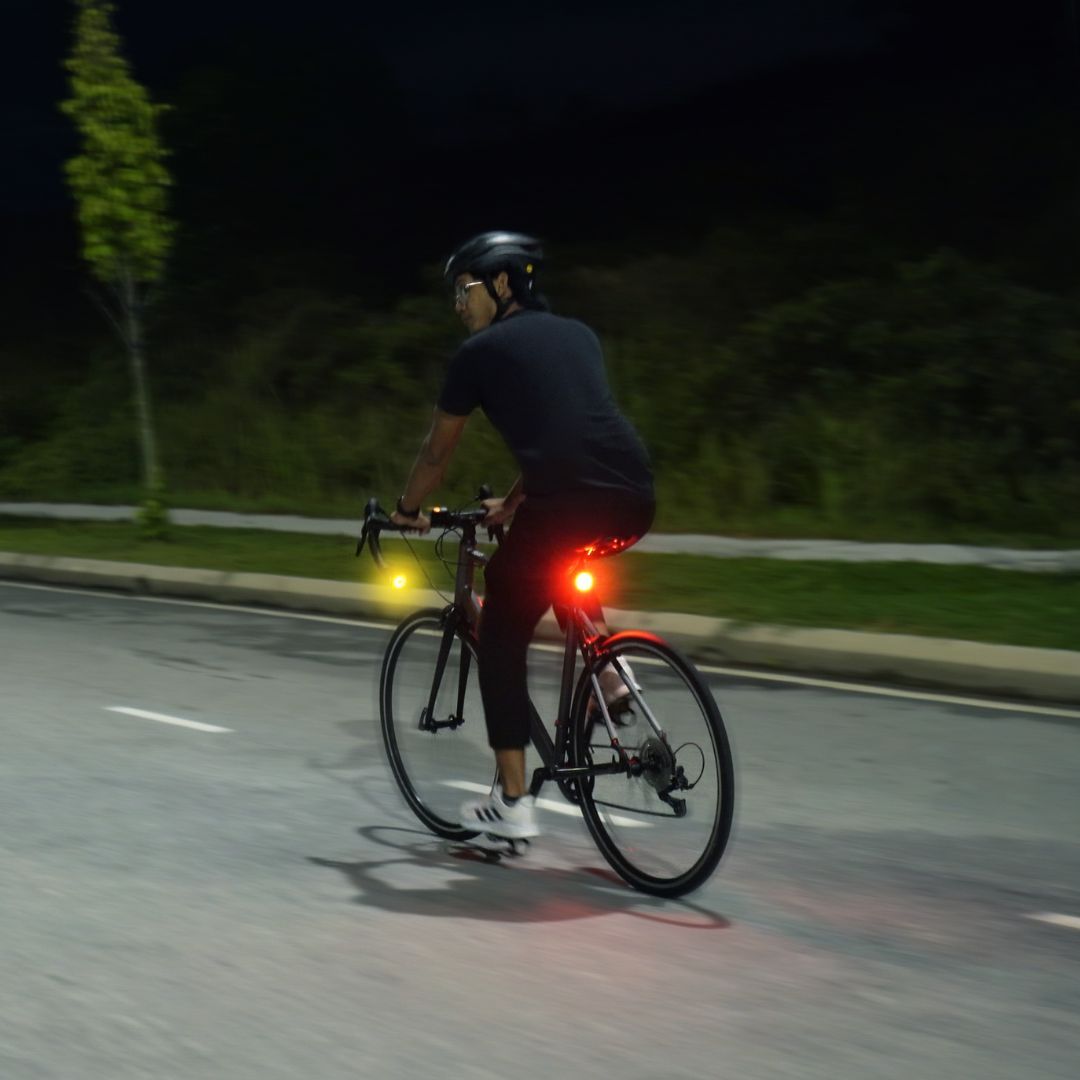 別売りのマウントを使用すればサドルの後ろ、ハンドルバーエンドに取付ができ、車からの視認性が劇的に良くなります。