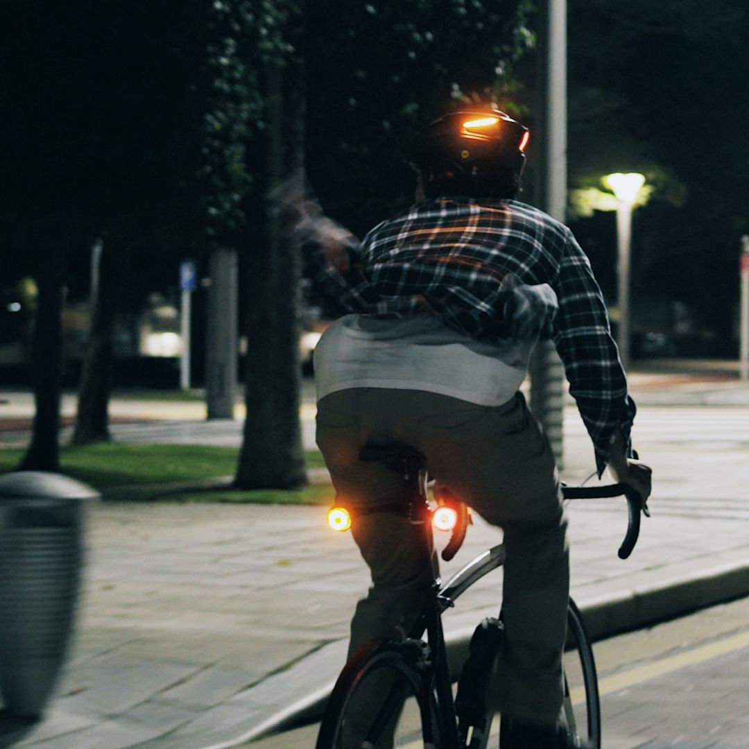 ULTRAヘルメットとシンクロさせて作動させることができます。ウインカーが付いていれば、車やバイクの仲間入りができます。車道走行時の存在感が増すので、車がきちんと避けてくれるようになります。
