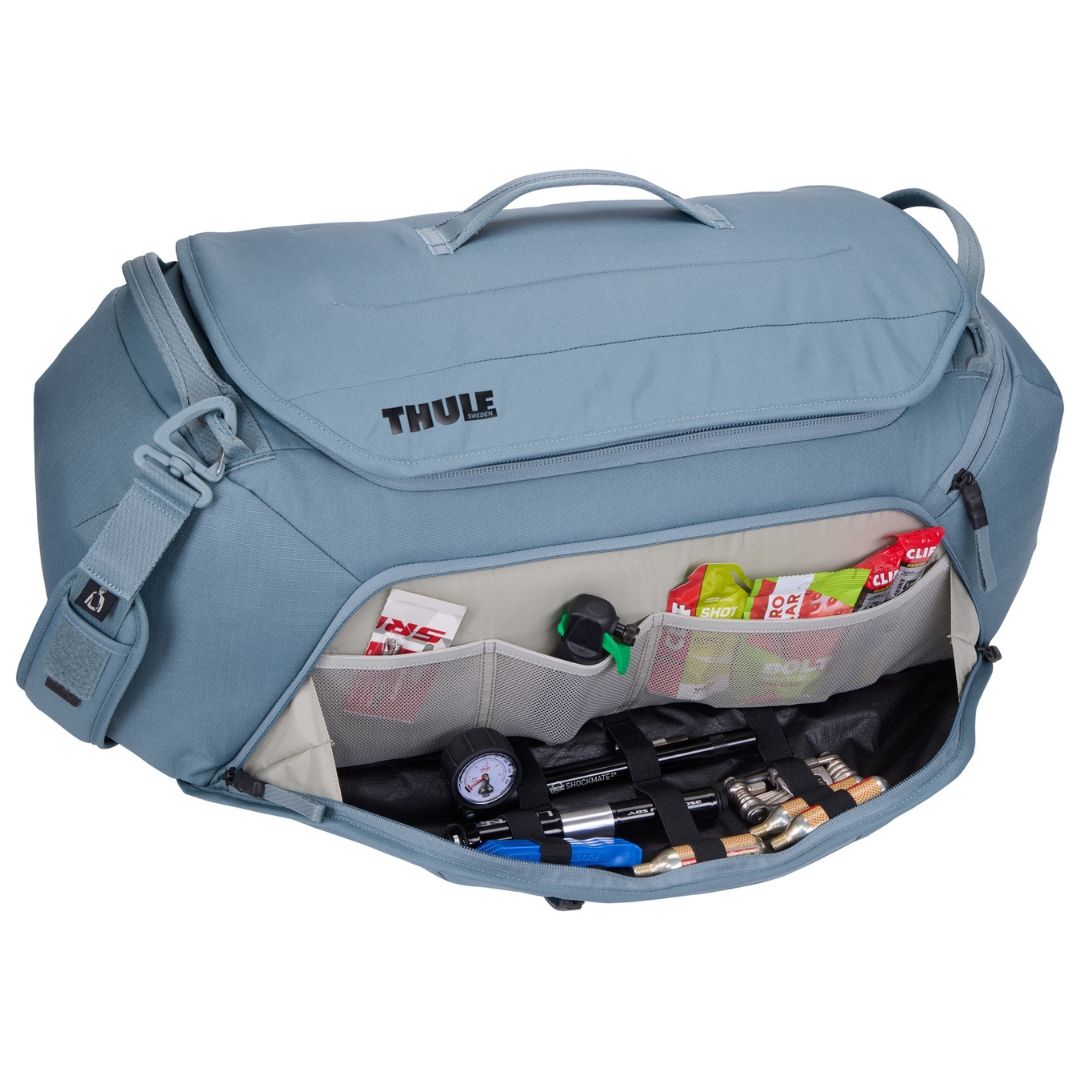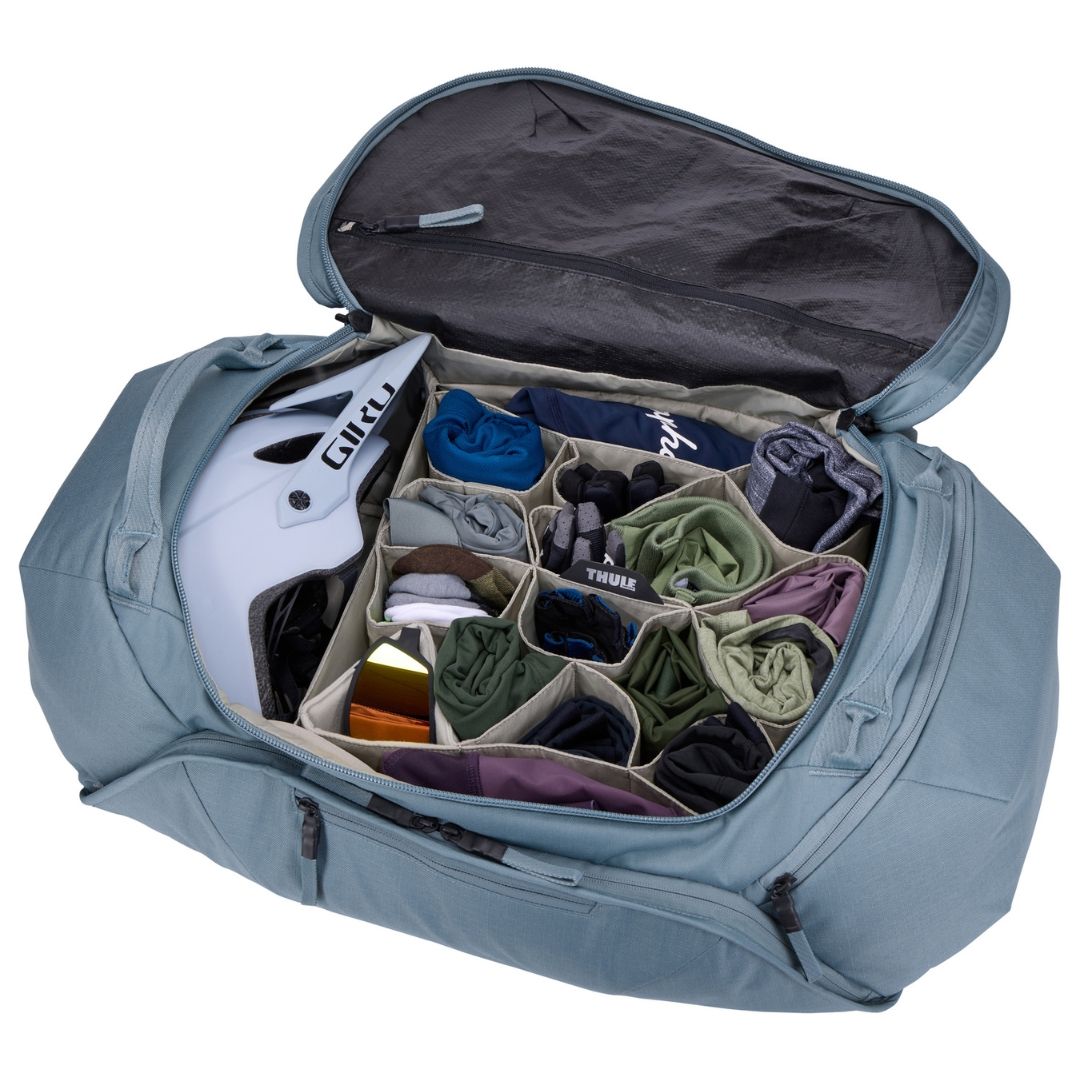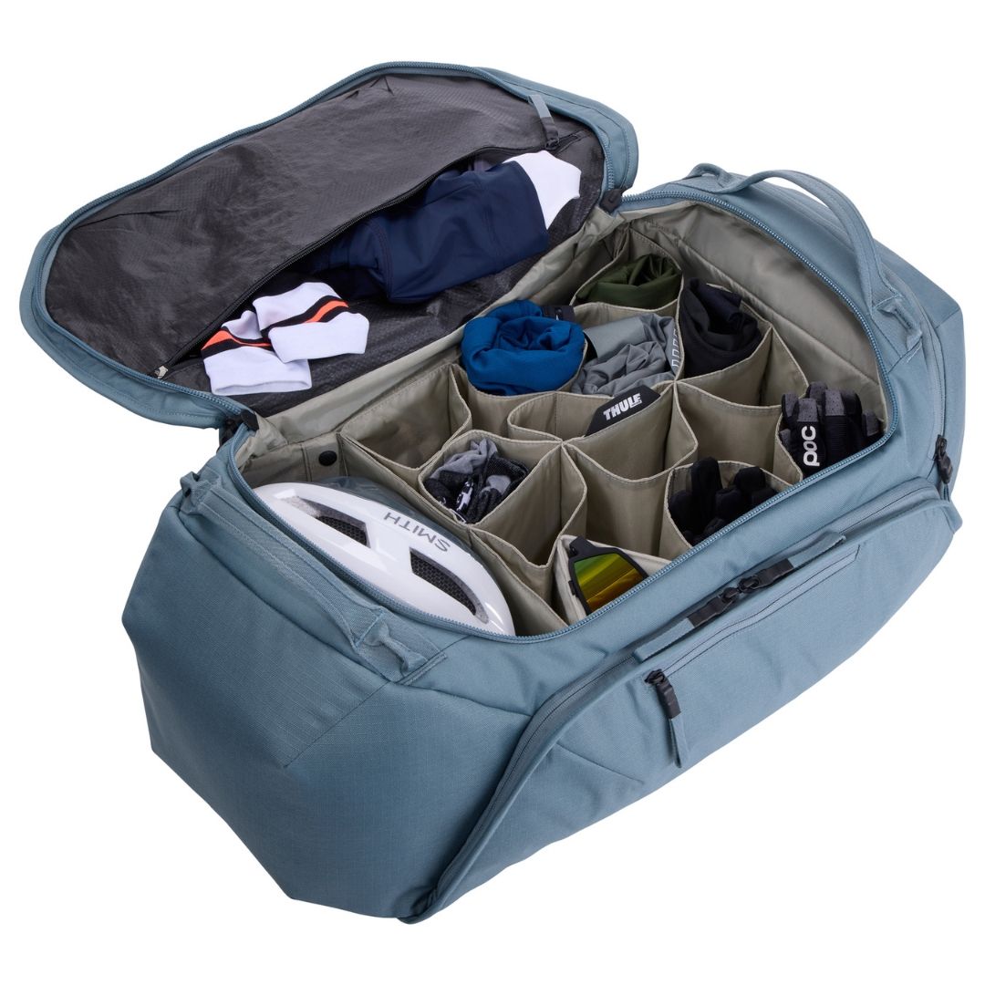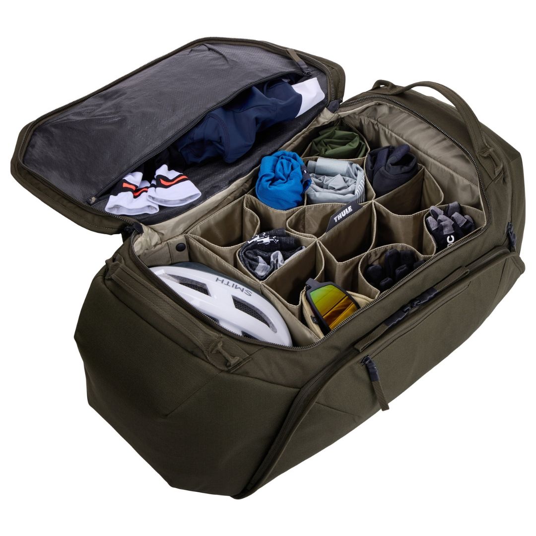 個別のセルポケットでキットやジャケットを整理できます。バッグ構造と広い開口部により、全てのアイテムが見やすく取り出しやすいです。専用コンパートメントにどんなサイズのヘルメットも収納できます。