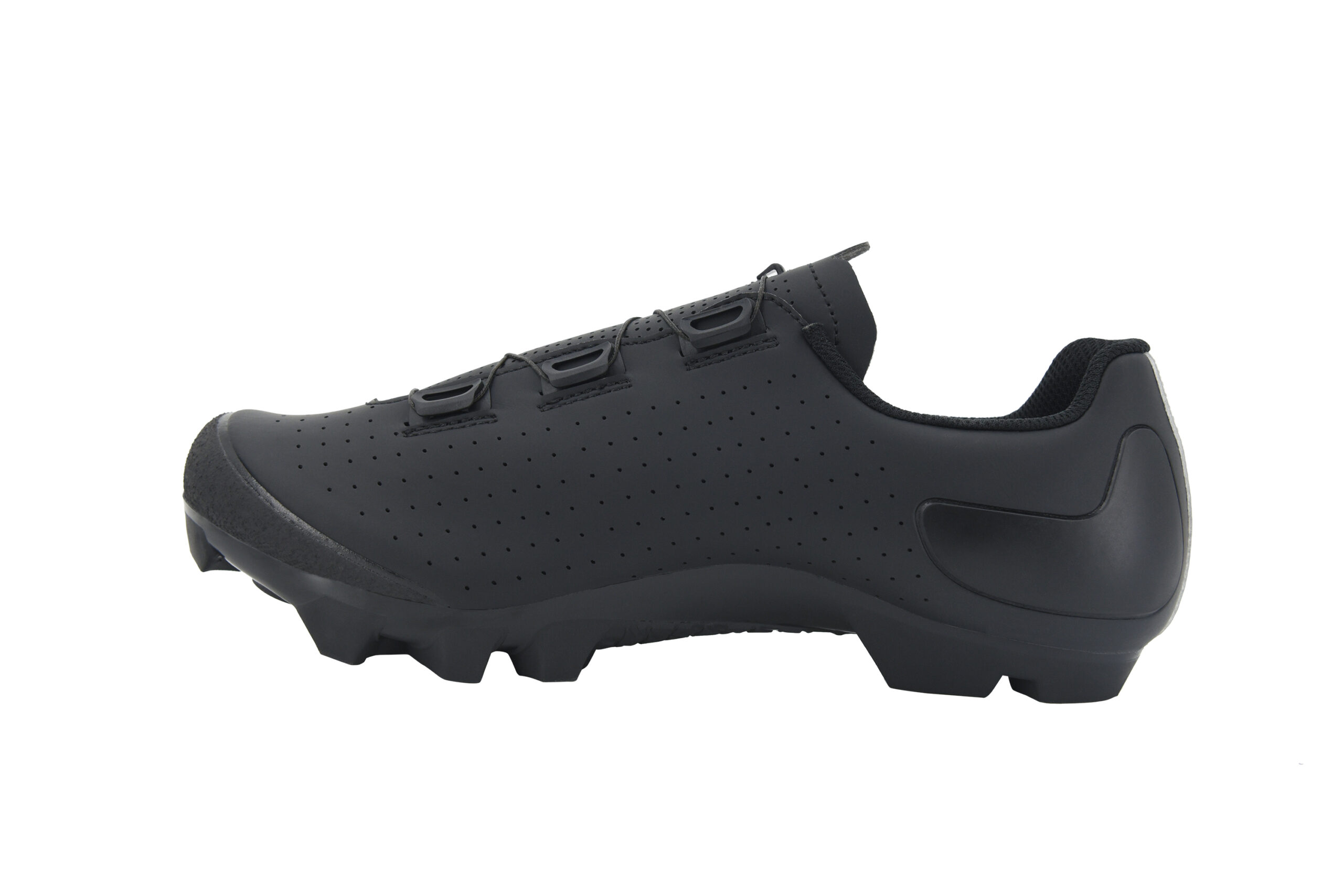 かかと周りにクッション性を高め、かかとが狭い日本人にも合いやすい形状を採用。リフレクター付きで、後方からの視認性も確保。