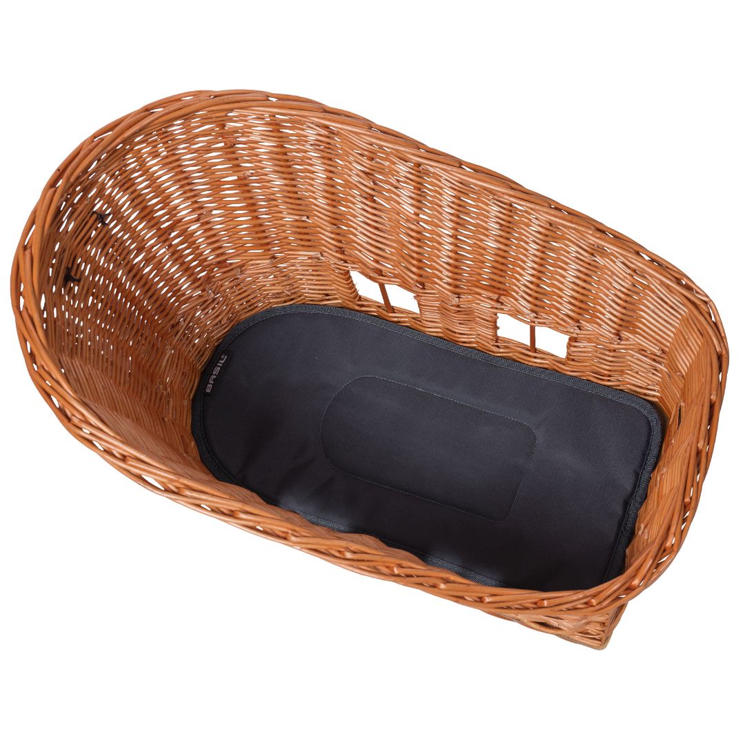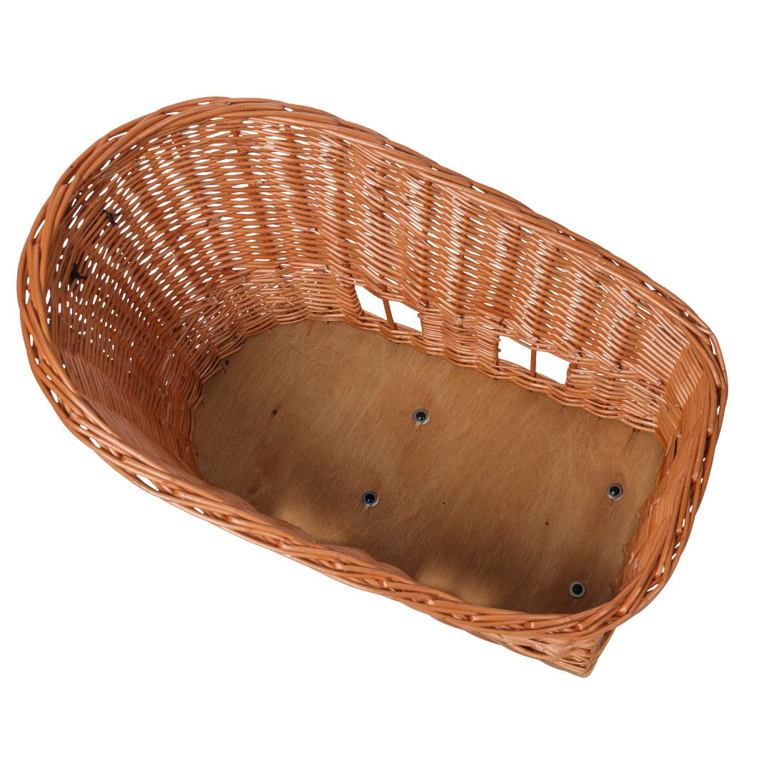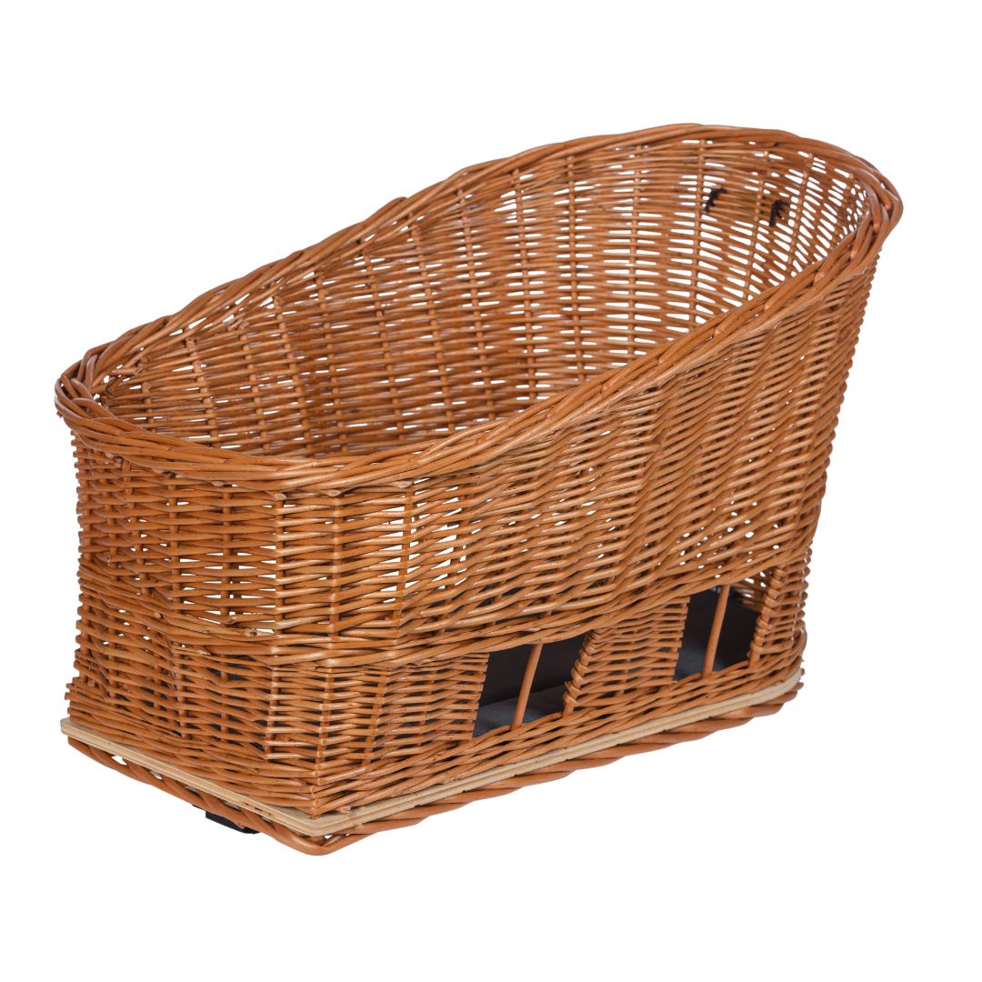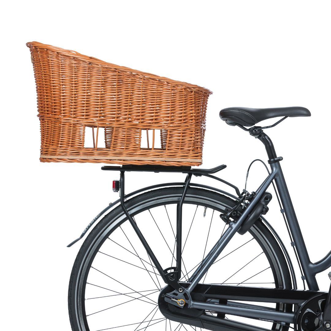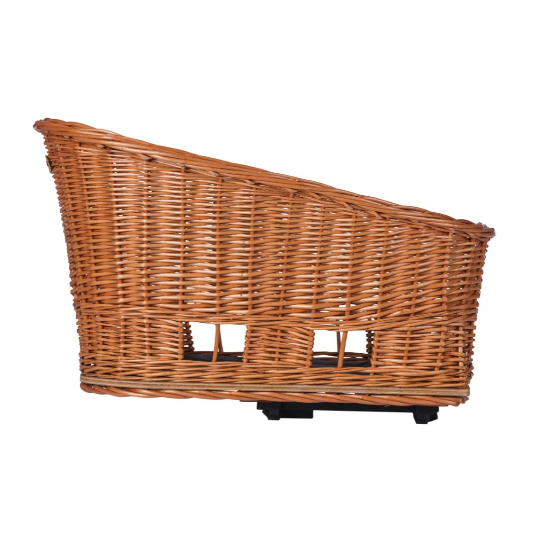 手編みの籐で作られたペット用リアバスケット。10kgまでのペットを乗せることが可能。