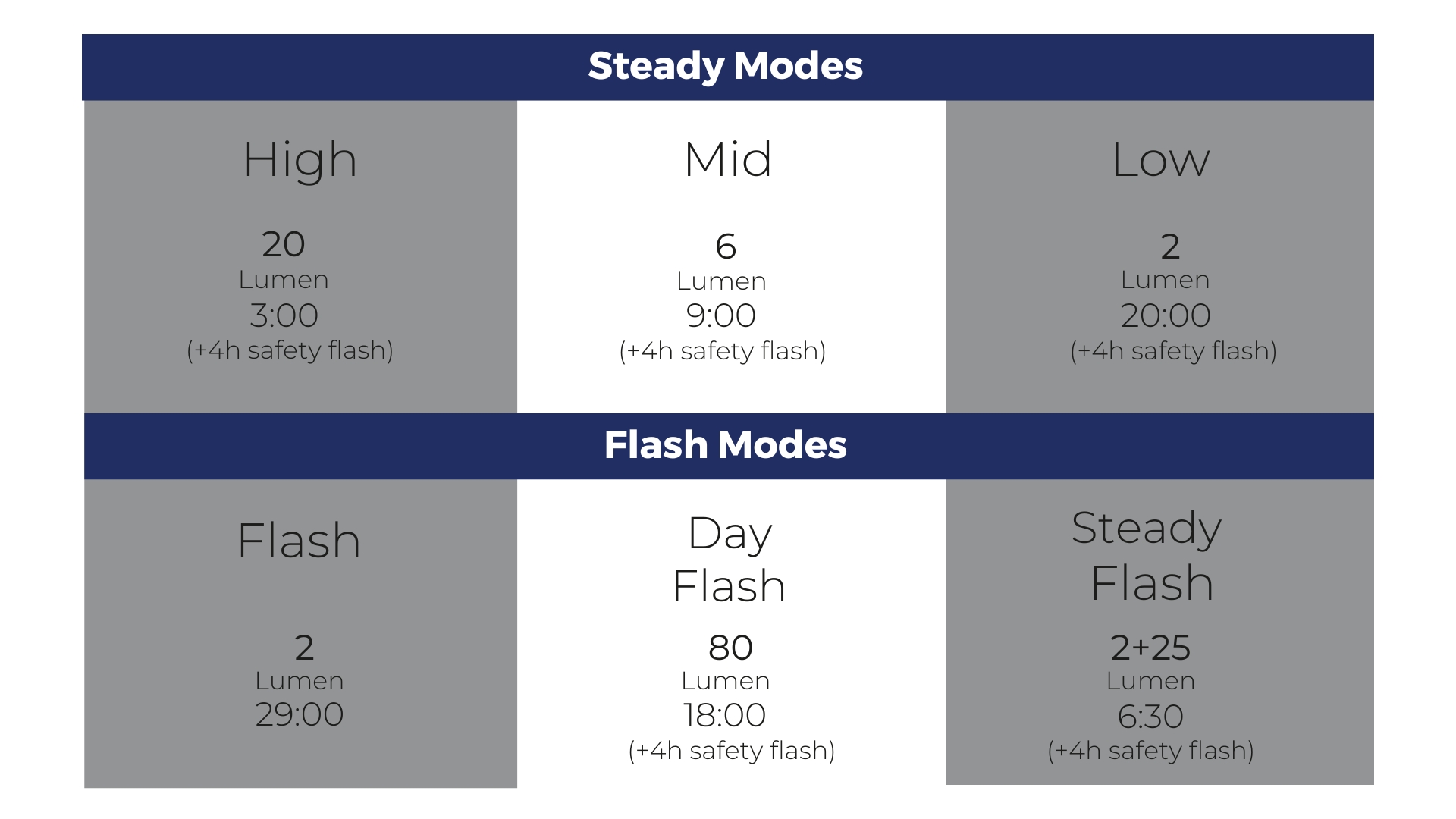 ●セーフティモード付(電池残量が少なくなると4時間のフラッシュモードへ移行)