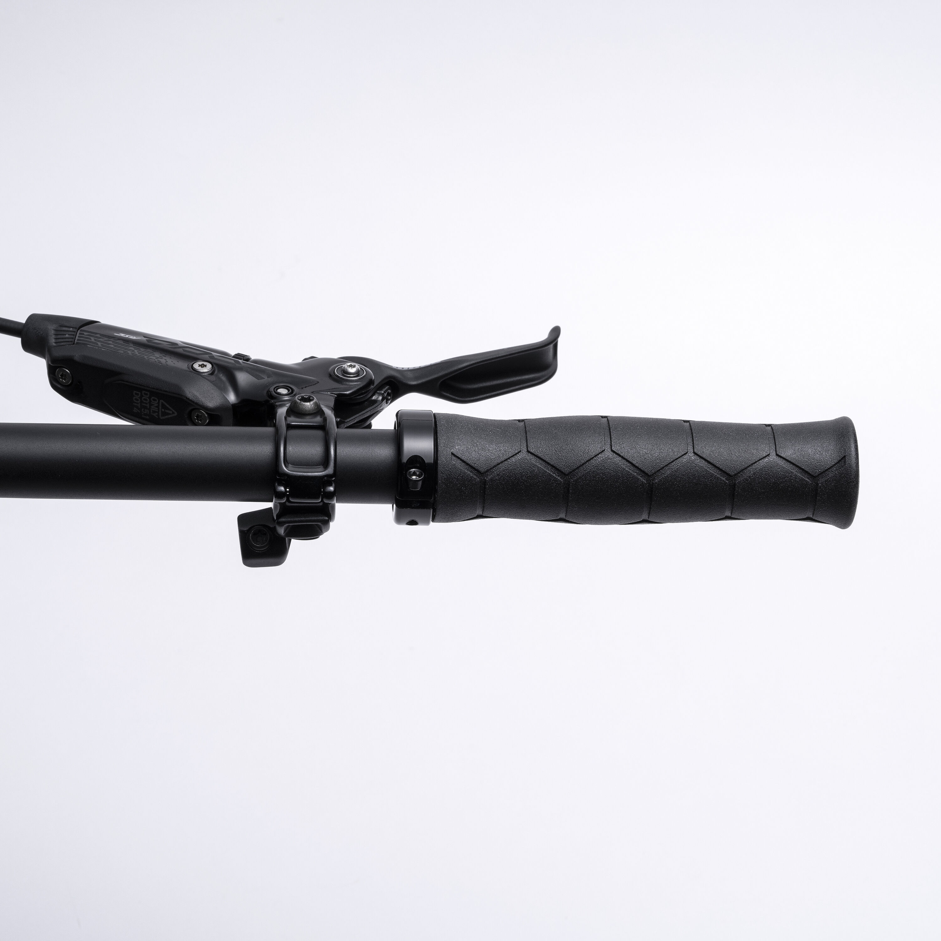 Semi Ergoグリップは、ライド中に優れたグリップ力とサポート性を発揮。手の輪郭に沿うように成形された、さりげなくエルゴノミックな六角パターンのデザインを施しています。医療グレードのシリコン素材を使用し、高いグリップ性能と快適なサポートを両立します。