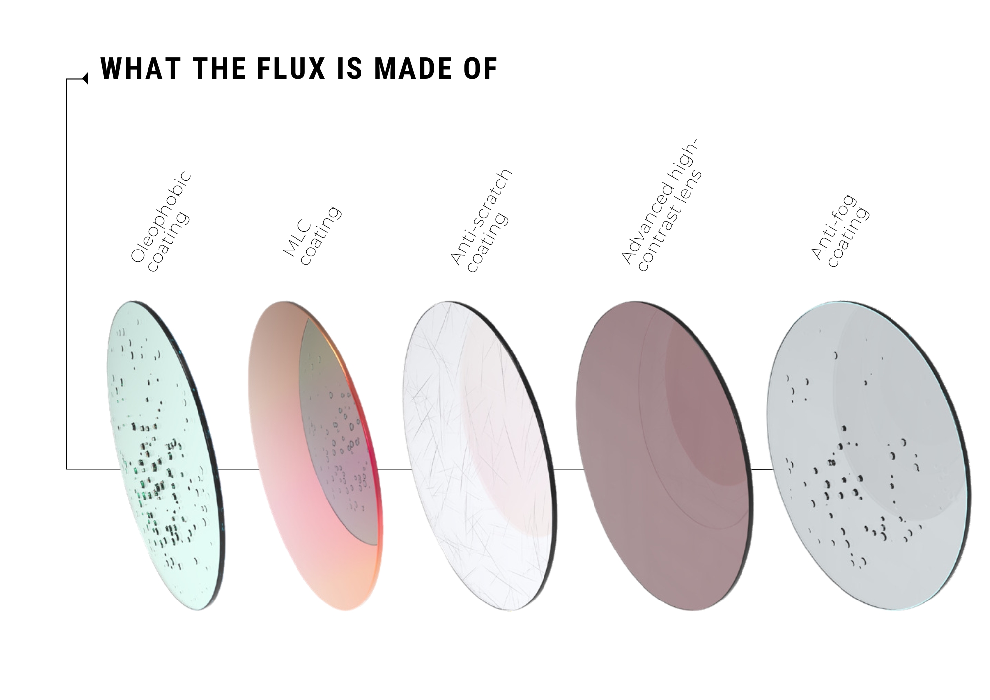 FLUXレンズは、驚異的なコントラストと高性能コーティングで、あなたのパフォーマンスを次のレベルへ引き上げます。また、水や汚れを弾く撥水・防汚コーティングに加え、傷防止加工を施し、常にクリアな視界を確保。さらに、防曇レイヤーが汗や蒸気の影響を防ぎ、マルチレイヤーコーティングによる理想的な色彩強調とスタイリッシュな仕上がりを実現しました。レンズは100%UVカット加工、ブルーライト/赤外線フィルターが施され、ライダーの目にかかるストレスを極限まで減衰します。