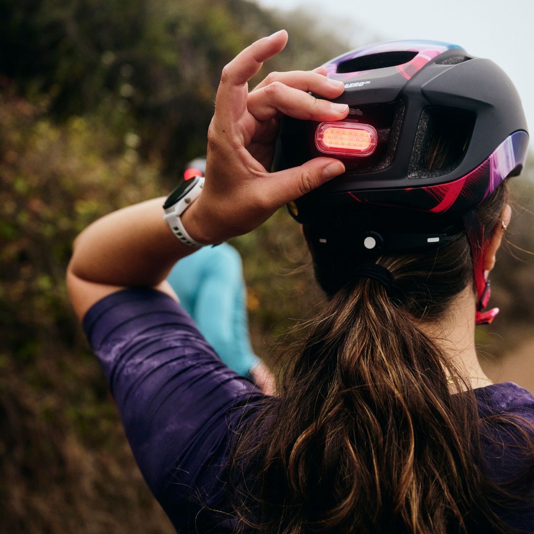 ライトを外した状態でもデザインを損なわないライトポート。ライトはマグネットで脱着できるので、スイッチのオンオフ、モード切替をヘルメットを外さずに目視しながら操作できます。ライトは同梱されているクリップを使えばランニングなどでも使用出来るため、自転車以外にも幅広く使用できます。