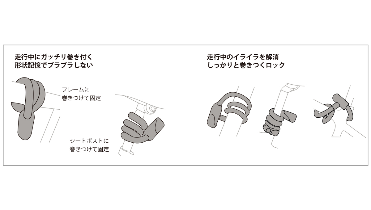 ●ハンドルやサドルなど走行中に巻き付けて持ち運び可能