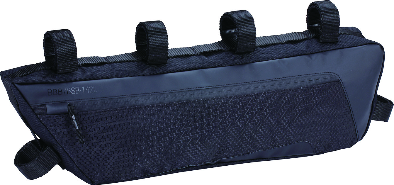 軽量なナイロン製のフレームバッグは、乗車時に必要なすべてのアイテムを持ち運ぶスペースを提供し、フレームに取り付けることができます。